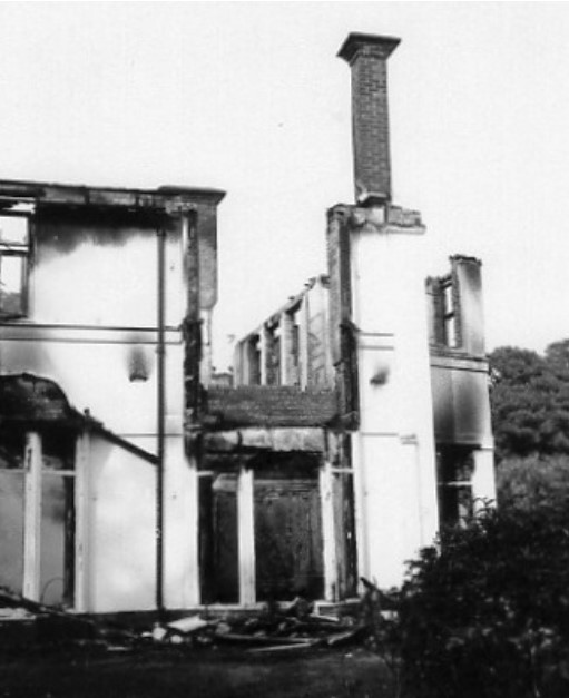 “From memory I recall the loss of this beautiful building. From what I understand (it may not be totally accurate but came from my friend, a Fireman who attended the fire). Building and redecoration work had been started and paint stripper, or some other similar flammable product had been used to remove paint from wooden fittings (doors, skirting etc). The workman broke for lunch and went off, the room(s) were not left ventilated (windows left open) and I believe the build up of flammable fumes reached a critical point, when they came back from lunch something or someone triggered the blaze (a workman smoking, or someone turning on something electrical which possible caused a spark?) My friend who was based at Hillingdon Station attended this fire (Ruislip would have attended first being the nearest – assuming they were not already out on a ‘shout’). He said the blaze was so intense they they could not put enough water onto it to try and control the blaze, more units were called in from the surrounding area and to get more water onto it they brought in hose laying fire trucks to tap into other water supplies. My friend and his wife were meant to be holding a BBQ that evening, I arrived with my then girlfriend at 7pm to help them set up only to find he was not there and she was trying to do everything! He arrived home just after 8pm looking rather blackened from fighting the fire, after a quick shower and change of clothes he told us the reason why he was late getting home (he should have finished his shift at 6pm). When he left crews were still in attendance damping down to prevent any possible re-ignition of the fire. Again, this was a very long time ago and my memory may not be what it once was but I think its fairly accurate.”